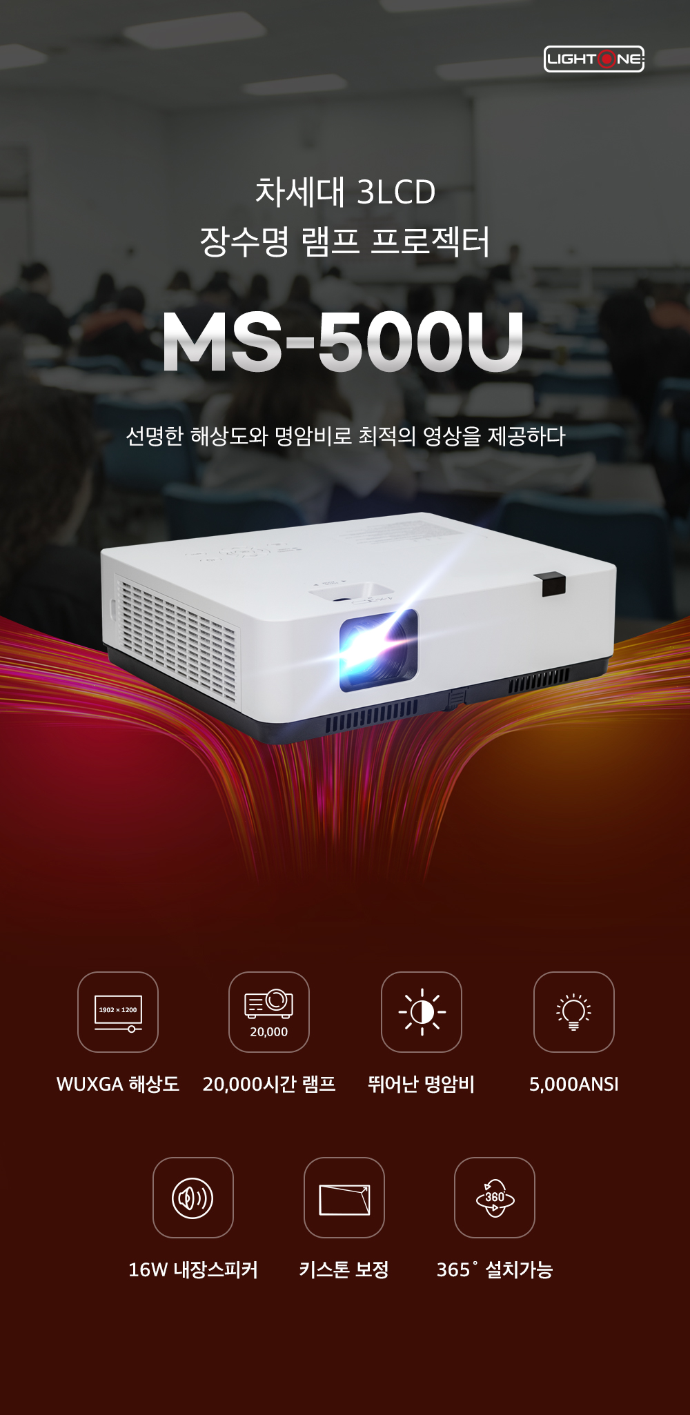 Beam Projector Model : MS-500U Specification : 램프.5,000 Ansi / XGA (1024x768p) Information : 교육 & 회의용 오피스 프로젝터