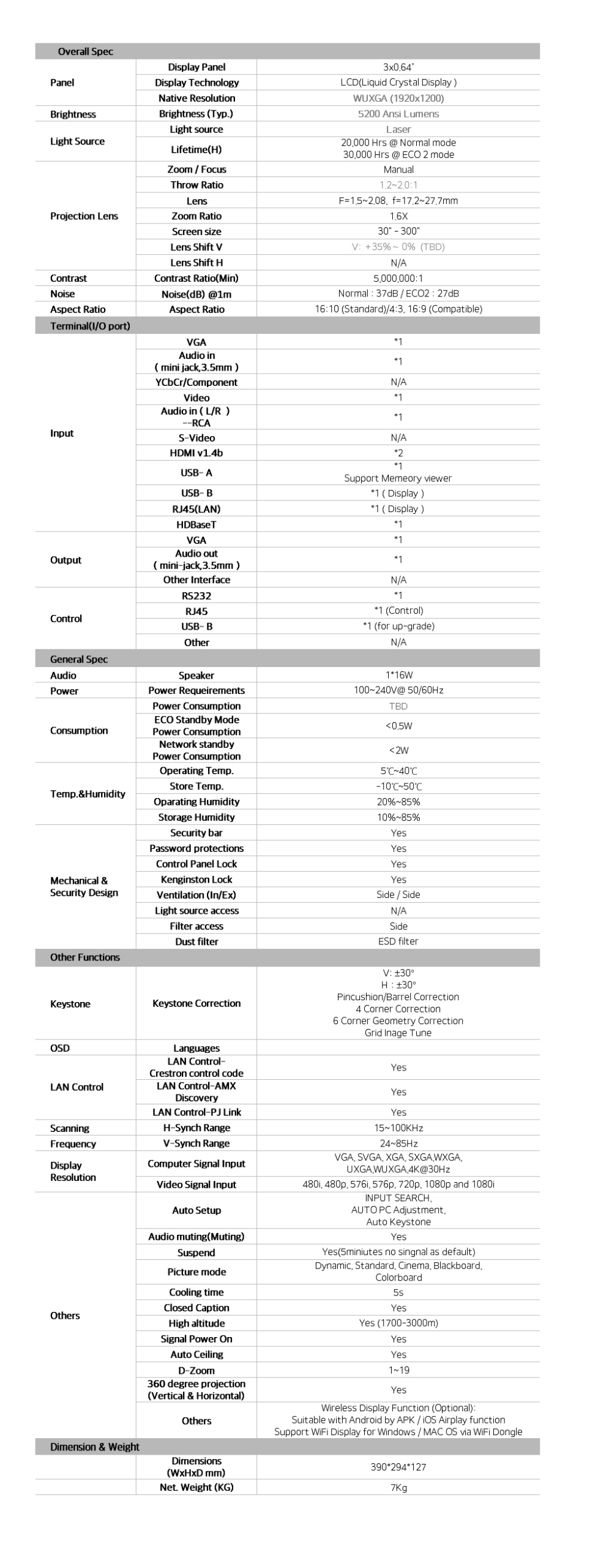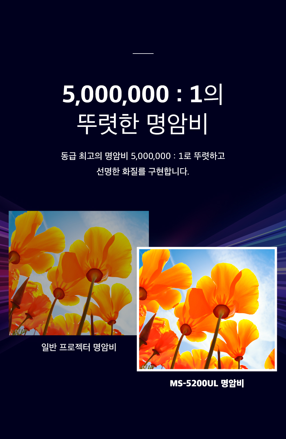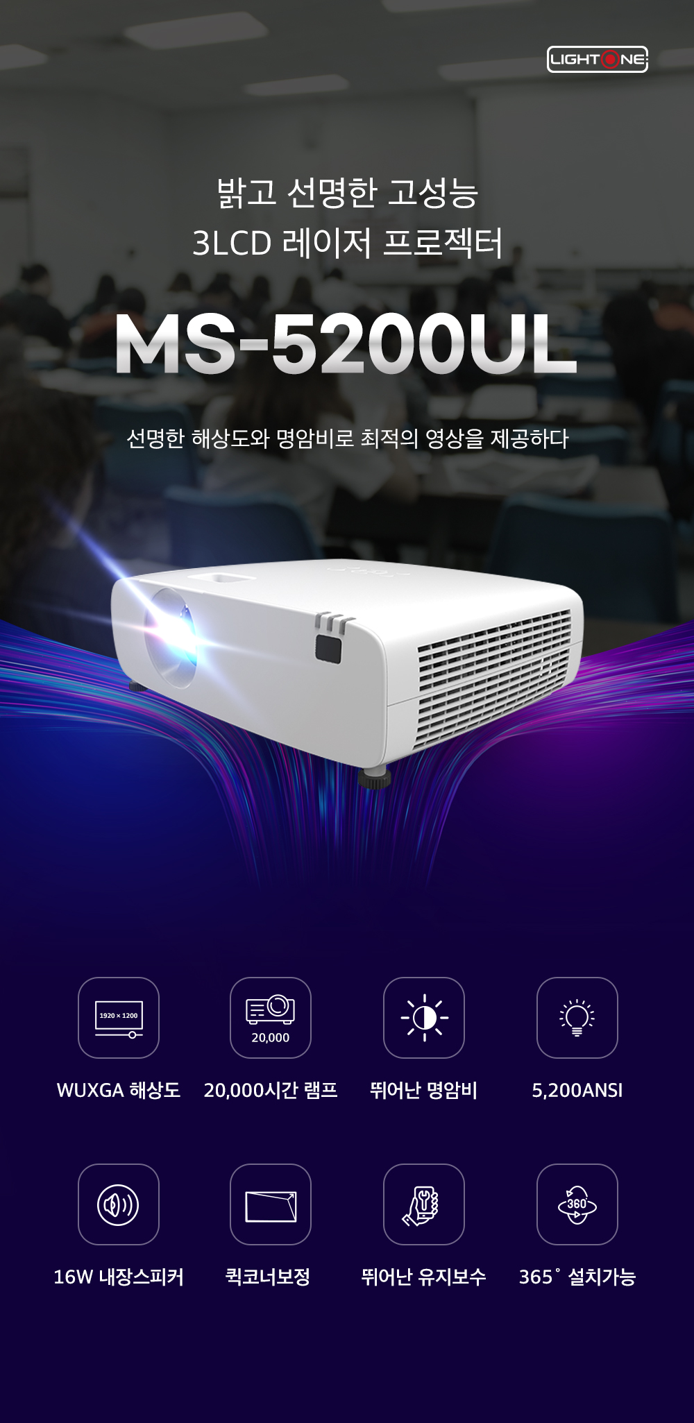 Beam Projector Model : MS-5200UL Specification : 레이저.5,200 Ansi / WUXGA (1920x1200p) info : 교육 & 회의용 오피스 프로젝터